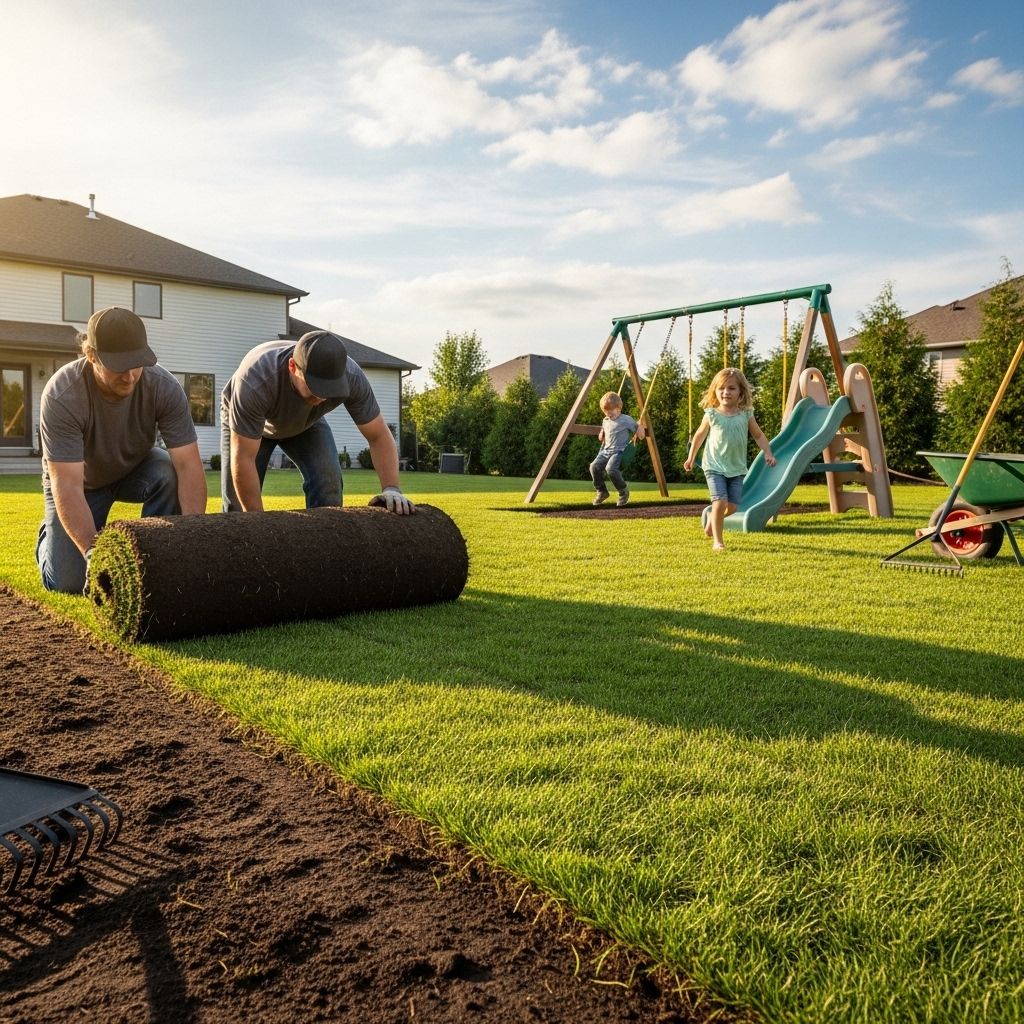 Sod Delivery and Handling: Fresh, high-quality sod is delivered and carefully handled to prevent damage.